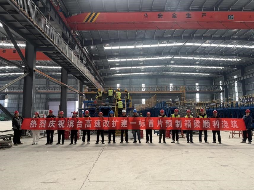 當(dāng)前位置:網(wǎng)站首頁>>工程建設(shè)| 智慧梁場順利完成濱臺高速改擴建一標 首片預(yù)制箱梁澆筑工作 |